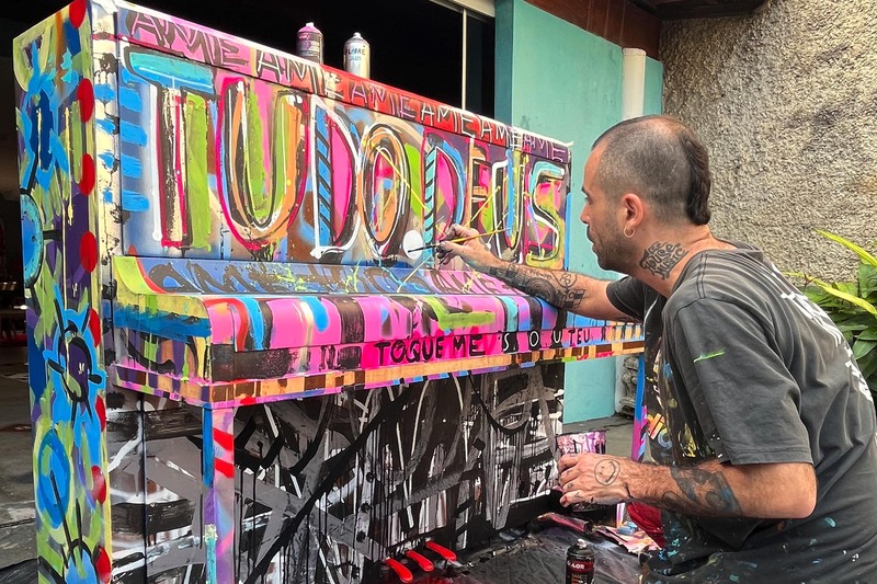 Eles fazem parte do projeto “Toque-me, Sou Teu”, que convidou seis grafiteiros da capital mineira para ilustrarem os instrumentos
