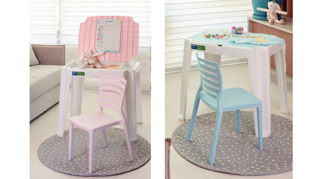 Kit com mesa e cadeira adaptadas para atender às necessidades de crianças com autismo ganhou o nome de “Conjunto Beni” em homenagem ao garoto